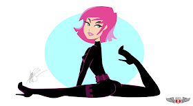 Damn, has it actually been nearly a month since I posted any works? Well, we can't have that now can we? So, to make it up to all of you fine (and less than fine) folks out there here is....no, it's not Kim Possible circa 2050....it's Frankarella, Frankie Foster's Barbarella inspired alter ego. Well, more like fever induced alter ego.