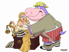 Technically speaking, this is an original piece....it's been a long, loooong time since I actually sketched anything out from scratch. The scene is based on the dvd cover art from Harvey Birdman: Volume Three....which is only about 1.5 inches square. Absolute murder on the eyes to use as a reference.