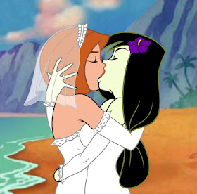 I saw several people mention (elsewhere on ye olde internet) that they would like to see a full-sized version on the "wedding photo" in the background of the G-man's most recent gift piece. Naturally, Gagala was gracious enough to send it to me, though I had hoped it would be a full-body shot of Ann and Shego. Oh well...beggars can't be choosers.